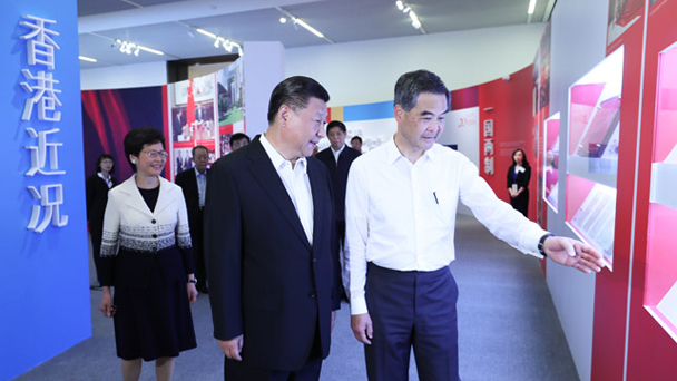 6月26日,中共中央總書記、國家主席、中央軍委主席習近平在國家博物館參觀香港回歸祖國20周年成就展。