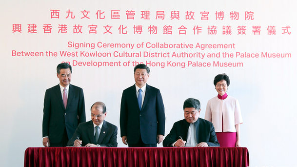 國家主席習近平29日下午在香港西九文化區(qū)出席《興建香港故宮文化博物館合作協(xié)議》簽署儀式。