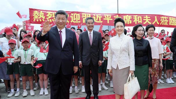 6月29日中午,中共中央總書記、國家主席、中央軍委主席習近平乘專機抵達香港,出席將于7月1日舉行的慶祝香港回歸祖國20周年大會暨香港特別行政區(qū)第五屆政府就職典禮并視察香港。新華社記者 蘭紅光 攝 6月29日中午,中共中央總書記、國家主席、中央軍委主席習近平乘專機抵達香港,出席將于7月1日舉行的慶祝香港回歸祖國20周年大會暨香港特別行政區(qū)第五屆政府就職典禮并視察香港。