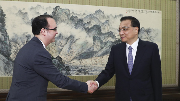 6月30日,國務院總理李克強在北京中南海紫光閣會見來華進行正式訪問的菲律賓外長卡耶塔諾。新華社記者 謝環(huán)馳 攝 6月30日,國務院總理李克強在北京中南海紫光閣會見來華進行正式訪問的菲律賓外長卡耶塔諾。