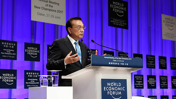 6月27日,國務院總理李克強在大連國際會議中心出席第十一屆夏季達沃斯論壇開幕式,并發表特別致辭。