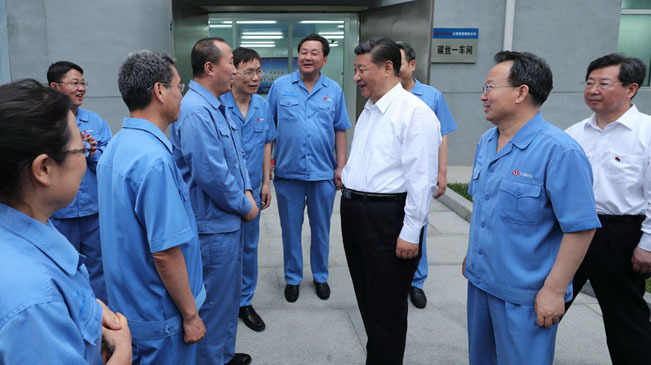 6月22日,中共中央總書記、國(guó)家主席、中央軍委主席習(xí)近平在山西太原考察企業(yè)。
