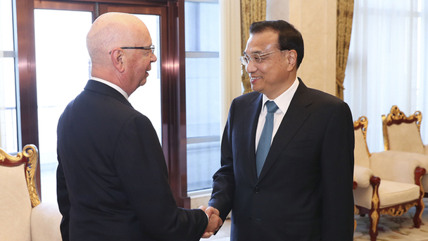 6月26日,國(guó)務(wù)院總理李克強(qiáng)在大連國(guó)賓館會(huì)見(jiàn)來(lái)華出席2017年夏季達(dá)沃斯論壇的世界經(jīng)濟(jì)論壇主席施瓦布等與會(huì)嘉賓代表。