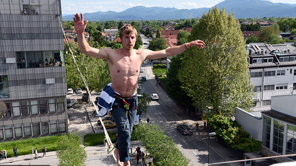 最近,有位斯洛文尼亞的學(xué)生為了節(jié)省時間,居然“不走尋常路”,在數(shù)學(xué)和物理教學(xué)樓之間安裝了一根繩索,從高空往返于兩個課堂。確實很省時間,就是看上去有些危險。