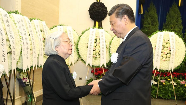 5月18日,錢其琛同志遺體在北京八寶山革命公墓火化。習(xí)近平、李克強、張德江、俞正聲、劉云山、王岐山、張高麗、胡錦濤等前往八寶山送別。這是習(xí)近平與錢其琛親屬握手,表示深切慰問。新華社記者 馬占成 攝