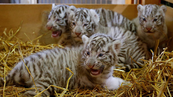 當地時間4月26日,四只萌萌的孟加拉虎幼崽亮相奧地利凱恩霍夫的白色動物園( White Zoo)。據悉,它們是今年3月22日出生的。四只剛滿月不久的小家伙縮在一起,動作憨態可掬,十分可愛。