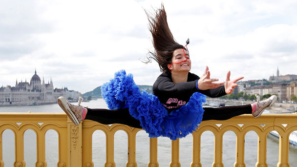 4月29日是國際舞蹈日,為了慶祝這個特別的節日,匈牙利舞者在首都布達佩斯的瑪格麗特橋上展現優美舞姿。凌空“一字馬”、一起跳高高、還有集體橋上壓腿,她們的舞姿有沒有打動你?