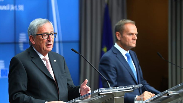 4月29日,在比利時首都布魯塞爾的歐盟總部,歐盟委員會主席容克(左)和歐洲理事會主席圖斯克在會議閉幕后出席新聞發布會。新華社記者龔兵攝 4月29日,在比利時首都布魯塞爾的歐盟總部,歐盟委員會主席容克(左)和歐洲理事會主席圖斯克在會議閉幕后出席新聞發布會。