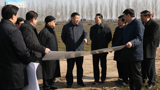 2017年2月23日,中共中央總書記、國家主席、中央軍委主席習近平在河北省安新縣考察雄安新區規劃建設工作。