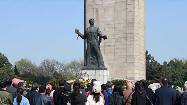 4月2日,烈士親屬在雨花臺烈士紀念碑前舉行憑吊儀式。當日,來自全國各地的近180位烈士親屬在南京雨花臺烈士陵園憑吊先烈,并參加了“紅色文化看傳承,不忘初心大道行”清明主題活動。