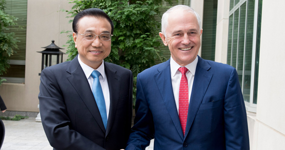 當?shù)貢r間3月24日,國務院總理李克強在悉尼與澳大利亞總理特恩布爾共同出席中澳工商界首席執(zhí)行官圓桌會。