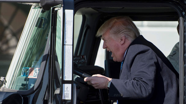 23日,美國總統(tǒng)特朗普在白宮會見美國卡車協(xié)會的司機和管理人員?!皼]有人比卡車司機更了解美國,”特朗普在推特發(fā)布的視頻中說道。