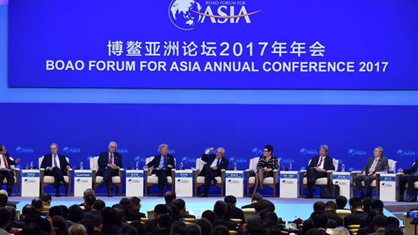 3月25日,博鰲亞洲論壇2017年年會在海南省博鰲舉行全體大會,討論直面全球化與自由貿易的未來。