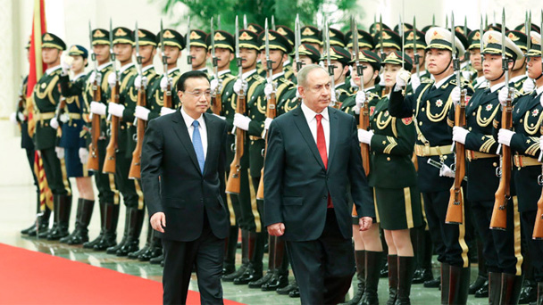 3月20日,國務(wù)院總理李克強在北京人民大會堂同來華進行正式訪問的以色列總理內(nèi)塔尼亞胡舉行會談。這是會談前,李克強在人民大會堂北大廳為內(nèi)塔尼亞胡舉行歡迎儀式。新華社記者龐興雷攝
