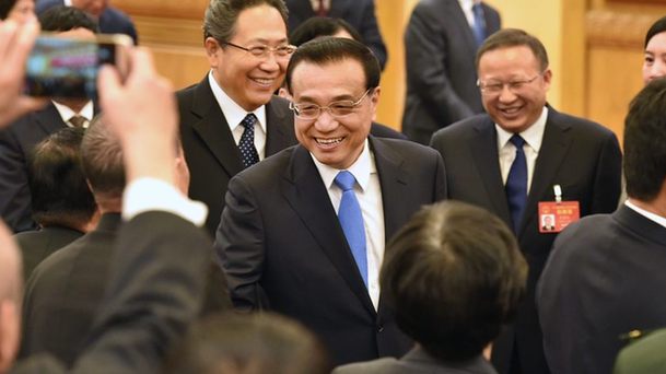 李克強(qiáng)總理6日上午來(lái)到他所在的十二屆全國(guó)人大五次會(huì)議山東代表團(tuán),參加審議政府工作報(bào)告。