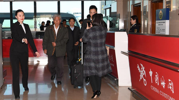 2月11日,在印度滯留50多年的中國老人王琪(中)抵達北京首都國際機場,順利回國。當(dāng)日是元宵佳節(jié),在印度滯留50多年、年近8旬的中國老人王琪在中國駐印度使館官員和在印家人的陪同下,從新德里乘飛機抵達北京,回到祖國懷抱。