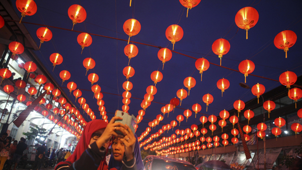 當地時間2017年1月21日,在位于印尼蘇拉卡爾塔亦稱“梭羅”的唐人街,街道中已經布置好數百個紅燈籠,準備迎接中國農歷新年。