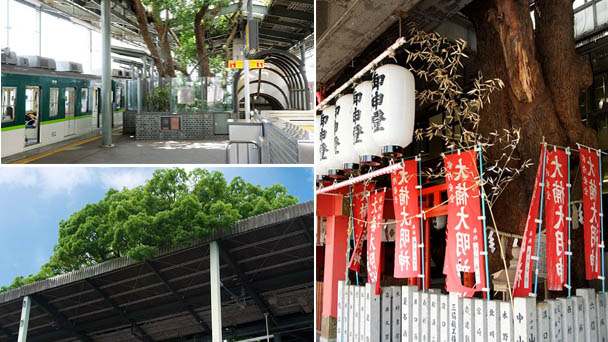 日本大阪的東北部,有座名為茅島的火車站證明了人和自然是可以和諧共處的。火車站里有一顆巨大的樟樹,從站臺上方的洞里延伸出去。日本官方認為,這棵樹的壽命已經超過700歲,受到人們的愛戴。