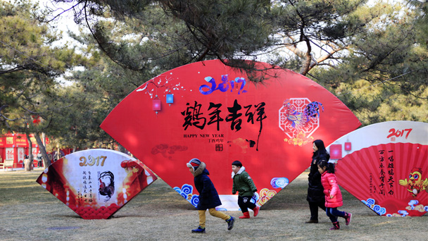 北京地壇春節文化廟會布展基本就緒,整個公園張燈結彩, 到處洋溢著新春佳節的喜慶氣氛。