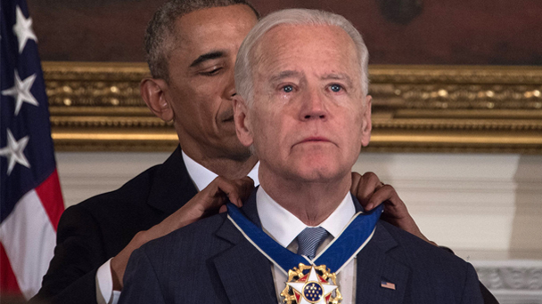 1月12日,美國總統(tǒng)奧巴馬在白宮為副總統(tǒng)拜登頒發(fā)了總統(tǒng)自由勛章。