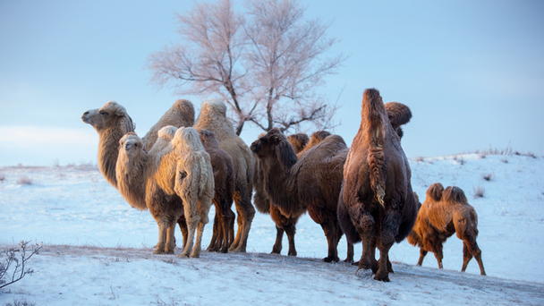 第七屆烏珠穆沁駱駝文化節(jié)在內(nèi)蒙古西烏旗開(kāi)幕。300多峰駱駝讓冰雪覆蓋的烏珠穆沁草原充滿生氣。