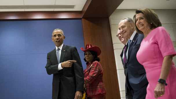 當地時間1月4日,美國總統奧巴馬在國會短暫現身,以號召支持他的民主黨議員力保醫改計劃得以繼續實施。
