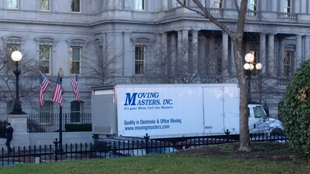 一輛搬家卡車1月4日停在白宮外,而兩周之后,美國總統奧巴馬就將離開這個他生活和工作了八年的地方。