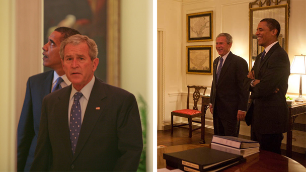2008年11月10日,美國新當選總統(tǒng)奧巴馬與前任總統(tǒng)喬治·沃克·布什在白宮舉行會面。隨著奧巴馬總統(tǒng)任期即將結(jié)束。當時他首訪問白宮的情景,值得回顧。