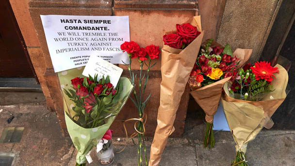 當?shù)貢r間2016年11月26日,英國倫敦民眾在古巴駐英國大使館前獻花,悼念古巴革命領(lǐng)袖菲德爾·卡斯特羅逝世。