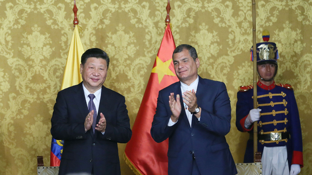 當(dāng)?shù)貢r間11月17日,國家主席習(xí)近平在基多同厄瓜多爾總統(tǒng)科雷亞舉行會談。