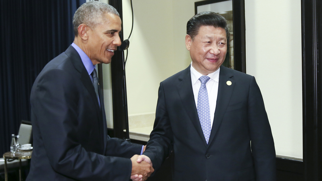 19日,國家主席習(xí)近平在利馬會見美國總統(tǒng)奧巴馬。兩國元首回顧總結(jié)3年多來中美關(guān)系發(fā)展經(jīng)驗(yàn),一致同意確保中美關(guān)系繼續(xù)沿著正確軌道健康穩(wěn)定向前發(fā)展。