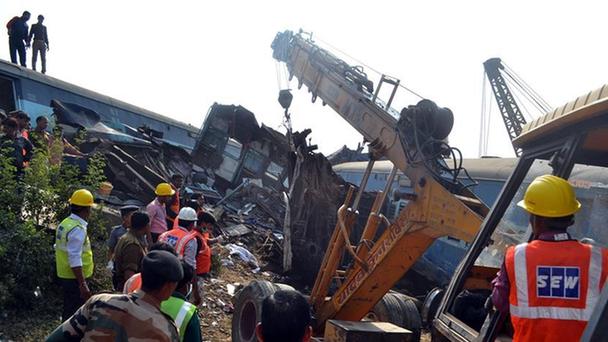 11月20日,救援人員在印度北方邦布克拉揚(yáng)地區(qū)的火車脫軌現(xiàn)場工作。印度警方20日說,一列快速列車當(dāng)天在印度北方邦布克拉揚(yáng)地區(qū)脫軌,目前死亡人數(shù)已升至103人,另有約150人受傷。印度警方20日說,一列快速列車當(dāng)天在印度北方邦布克拉揚(yáng)地區(qū)脫軌,目前死亡人數(shù)已升至103人,另有約150人受傷。