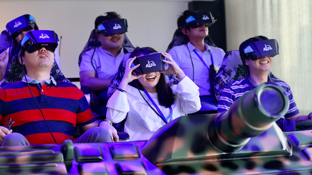 參與由中國日報網主辦的“中俄網絡媒體論壇”的記者們28日前往廣州玖的數碼科技有限公司,現場體驗了最新VR技術。