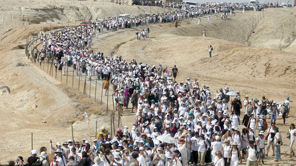 當(dāng)?shù)貢r(shí)間2016年10月19日,數(shù)百名以色列與巴勒斯坦女性在約旦河西岸城市杰里科舉行集會(huì),要求“和平安居,制止占領(lǐng)”。