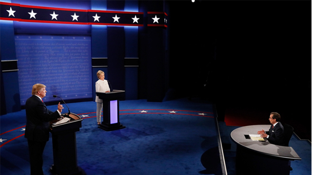 當(dāng)?shù)貢r(shí)間2016年10月19日,2016美國(guó)總統(tǒng)大選第三場(chǎng)辯論、也是最后一次辯論在美國(guó)內(nèi)華達(dá)大學(xué)拉斯維加斯分校舉行。