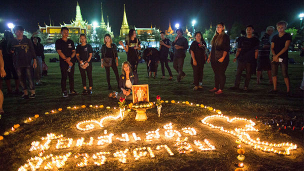 當(dāng)?shù)貢r(shí)間20日,泰國(guó)民眾在曼谷大皇宮外點(diǎn)起蠟燭,持續(xù)悼念已逝的泰國(guó)國(guó)王普密蓬。