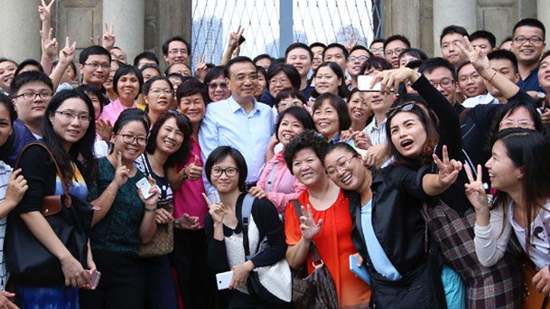 李克強(qiáng)在澳門大三巴“陷”入人海