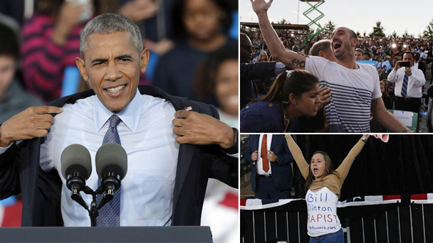 當(dāng)?shù)貢r(shí)間10月11日,美國(guó)總統(tǒng)奧巴馬在北卡羅來納州格林斯伯勒舉行集會(huì),為民主黨總統(tǒng)候選人希拉里拉票,卻遭到示威者鬧場(chǎng)。