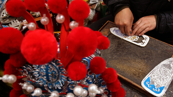 秦腔戲帽子又稱戲盔,其造型夸張、種類繁多,是秦腔戲曲舞臺上的特色。