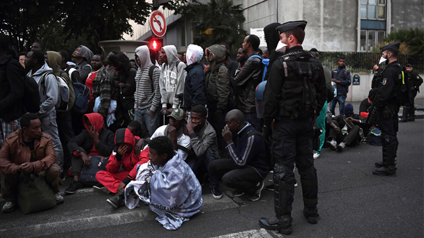 9月16日,法國巴黎巴黎政府拆除一處位于巴黎地鐵饒勒斯站和斯大林格勒站之間的臨時(shí)移民營,大批移民聚集在一起等待撤離。