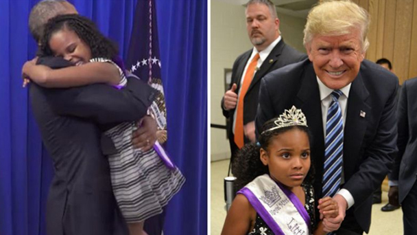 美國大選走到現(xiàn)在,各種謠言、口水戰(zhàn),和意想不到的事情天天都在上演。最近網(wǎng)上瘋傳一位小女孩分別與奧巴馬和特朗普的反差合照,讓討厭特朗普的人又樂了。