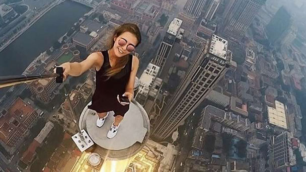 俄羅斯23歲姑娘安哥拉?尼古勞專門熱衷于尋找新鮮事物進行挑戰,且每次都拍照留念??v觀她拍照的地點,簡直讓人聞之卻步,不是在摩天大樓的邊緣,就是在高層建筑的樓頂。