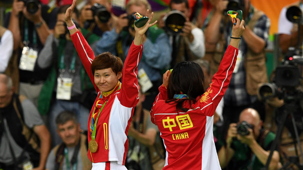 里約奧運會場地自行車女子團體競速賽決賽中,中國組合宮金杰/鐘天使以32秒107的成績,擊敗俄羅斯組合獲得冠軍。