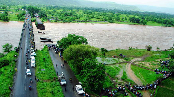 印度警方8月3日稱,印度西部城市孟買至果阿邦的高速公路上一座跨越瑟維德里河的橋梁2日深夜發(fā)生坍塌,兩輛巴士被河水沖走,估計(jì)有22人失蹤。目前,印度正值暴雨之季。坍塌很有可能是持續(xù)暴雨及不斷上漲的河水所致。