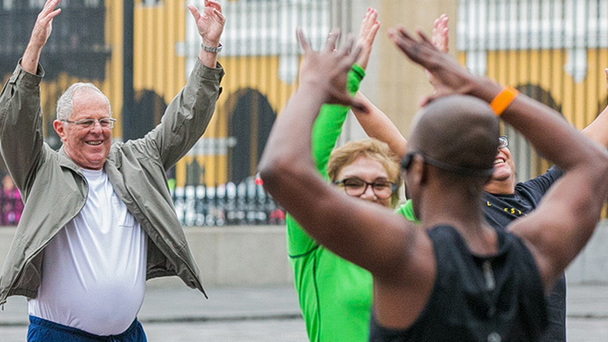 2016年8月4日,秘魯總統(tǒng)佩德羅·巴勃羅·庫琴斯基與大臣們?cè)谑姓d前集體運(yùn)動(dòng)。