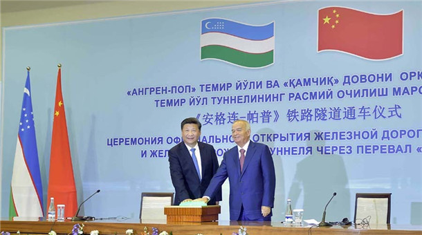 6月22日,國家主席習(xí)近平和烏茲別克斯坦總統(tǒng)卡里莫夫在塔什干共同出席“安格連-帕普”鐵路隧道通車視頻連線活動。新華社記者李濤攝 6月22日,國家主席習(xí)近平和烏茲別克斯坦總統(tǒng)卡里莫夫在塔什干共同出席“安格連-帕普”鐵路隧道通車視頻連線活動。