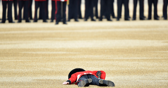 當(dāng)?shù)貢r(shí)間2016年6月11日,英國(guó)女王伊麗莎白二世的90歲官方生日慶典舉行。女王及王室成員乘坐馬車(chē)離開(kāi)白金漢宮參加皇家軍隊(duì)閱兵儀式。然而,現(xiàn)場(chǎng)一名衛(wèi)兵因體力不支暈倒在地,被抬到場(chǎng)外。