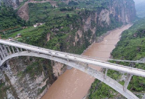7月10日,布拖縣馮家坪金沙江“溜索改橋”項(xiàng)目基本建成,連接四川省布拖縣馮家坪村和云南省巧家縣鸚哥村的一座跨江大橋歷經(jīng)2年半終于達(dá)到了通車(chē)條件。新華社記者 江宏景攝 俯瞰布拖縣馮家坪金沙江“溜索改橋”項(xiàng)目跨江大橋(7月8日無(wú)人機(jī)拍攝)。