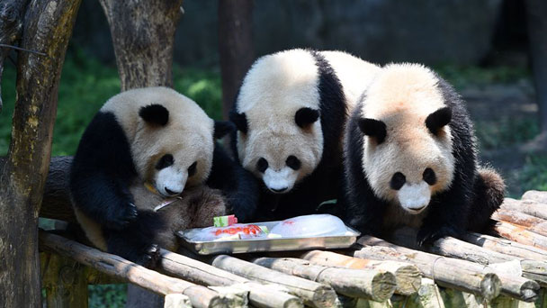 當(dāng)日,重慶市動(dòng)物園在猩猩館、羊駝館、熊貓館等開(kāi)展為動(dòng)物們防暑降溫活動(dòng)。新華社記者唐奕攝 7月13日,重慶市動(dòng)物園為大熊貓?zhí)峁┍?zhèn)竹筍和西瓜等。新華社記者唐奕攝 7月13日,重慶市動(dòng)物園的猩猩在吃西瓜汁冰糕。