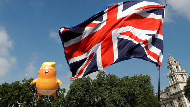 當(dāng)?shù)貢r(shí)間7月13日,英國(guó)抗議者在議會(huì)廣場(chǎng)花園放飛了“特朗普”寶寶,以此抗議特朗普出訪(fǎng)英國(guó)。